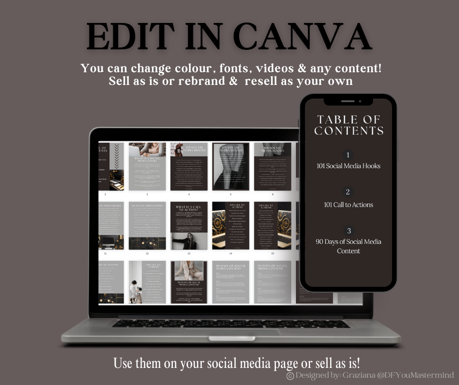 This done-for-you eBook is about promoting the digital products you are selling on social media. It breaks down hooks and CTAs (Call To Action) and why they are important for your social media posts, plus examples to use!